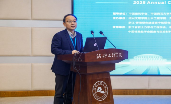 中国工程院院士、浙江省岩土力学与工程学会理事长杜时贵教授发表热情洋溢的讲话,充分肯定了学院近年发展成果,特别是今年成功获批全国重点实验室的突破,同时也指出学科发展过程中面临的挑战。他诚挚希望各位参会专家能持续关心指导学校土木工程学科发展,分享前沿实践经验,为土木工程学科建设注入更强动力。