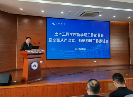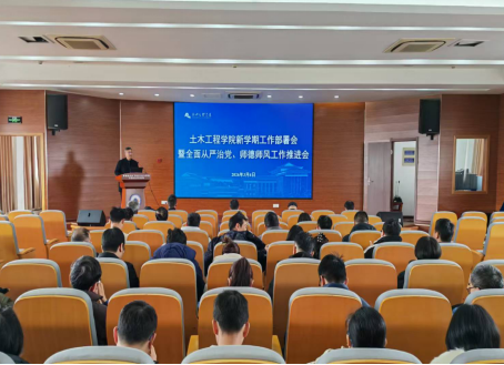 3月4日,土木工程学院新学期工作部署会暨全面从严治党、师德师风工作推进会在国重大楼报告厅举行。学院党政领导班子成员及全体教职工参加会议,党委书记袁油迪主持会议。