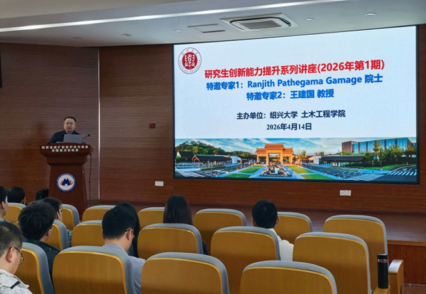 2026年4月14日,由土木工程学院、深部金属矿智能开采与装备全国重点实验室、全省岩石力学与地质灾害重点实验室共同主办的“土木工程学院2026年第1期研究生创新能力提升讲座”(专题研讨如何撰写与发表高质量科研论文),在全国重点实验室学术报告厅成功举办。讲座邀请到中国工程院外籍院士、澳大利亚技术科学与工程院院士、英国皇家工程院外籍院士、澳大利亚莫纳什大学Ranjith Pathegama Gamage教授和绍兴大学王建国教授作为主讲人。讲座由土木工程学院院长杨圣奇教授主持,学院近100名师生参加了本次讲座。