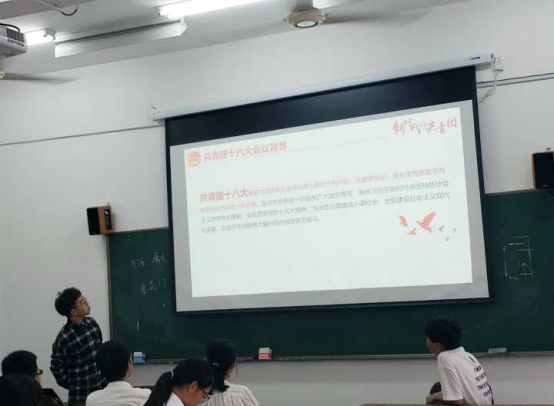 为了深入领会团的十八大精神和深刻内涵,宣传大会精神,了解广大团学组织和青年学生学习情况,引导团员青年结合自身思想和学习实际,建筑学181班全体同学在2018年9月21日开展学习团的十八精神主题班会。学习宣传团的十八大精神,通过了解团的十八大,我们进行了简单的团与十八大知识竞猜,共同起立唱团歌,向团组织致敬,在班会的最后观看了爱国短片,欣赏祖国发展宏图。