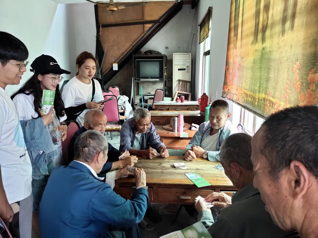 之后,在村长的引领下,同学们来到村子里人群比较密集的地方,为村民们讲解并发放宣讲手册,刚开始,村民们的热情度并不高,表现得很冷漠,但慢慢的,在同学们的细心讲解与耐心引导下,村民们的兴趣逐渐提升,非常乐意地接受了我们的宣传手册,并告诉我们会认真学习手册上的知识。