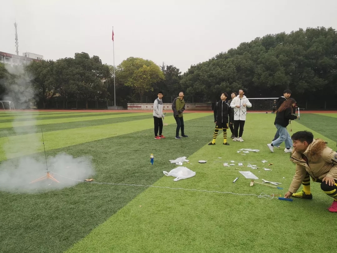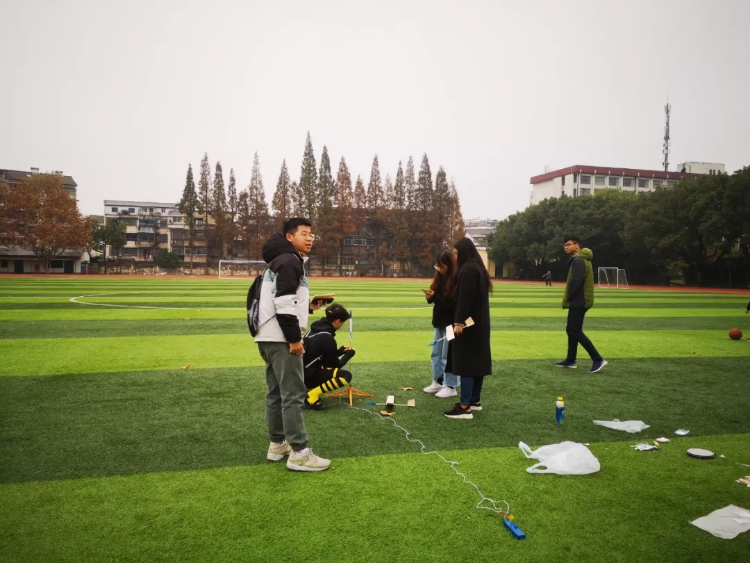 本次力学竞赛共有19名同学参与,总计6个小组。1月30号早上8点,紧张、激烈的现场模型制作开始了。加工制作完成后,选手们小心谨慎地调试着模型,他们时而反复校对飞机重心,时而增加配重以改善其盘旋能力。随着火箭带动飞机升入高空,大家所有的目光都聚焦在飞机的滑翔上,掌声响起,饱含着祝贺、赞许和喜悦。经过两个多小时的角逐,比赛圆满结束。最终,大赛组委会评出一等奖一项,二等奖两项、三等奖两项和优胜奖一项。滑翔机现场发射:每个小组制作两架滑翔机,飞行前进行质量校核与翼展的校核,符合要求后的滑翔机方可发射。比赛的成绩取决于飞行的时间以及质量。下面分享比赛现场精彩的图片: