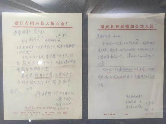 校史馆中段有杨上发老人想为学校建设添一份力的申请书。他希望通过自己三四十年来练就的一身手艺为学校写绍兴大学的金字牌匾。透过老人诚恳的话语,我们看到的是一位热爱母校乐于奉献的老校友。正如红笔画出的重点字句一样,绍兴大学人才济济,“有钱的出钱,没钱的出艺”。整个大家庭定会越来越辉煌。