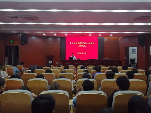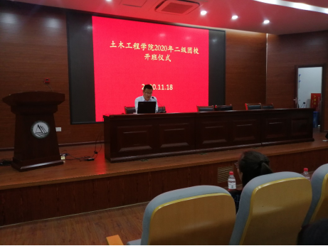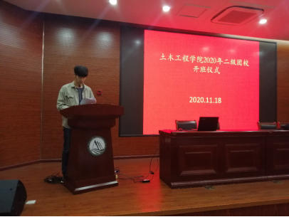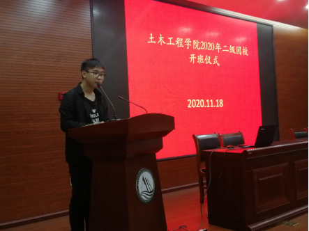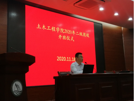 为深入学习贯彻党的十九大和团的十八大精神,贯彻落实《高校共青团改革实施方案》,提高我院青年团员的思想政治素养,增强团学骨干的责任感和使命感,切实发挥团员的先进模范作用和带头作用,增强团组织的吸引力和战斗力,11月18日晚6:30,土木工程学院2020学年二级团校开班仪式暨团校培训第一课于岩土大楼七楼报告厅顺利开展。